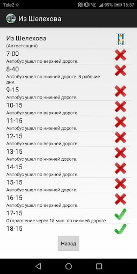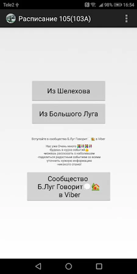 Convenient bus schedule 105 (103А) Shelekhov - Bolshoy Lug.