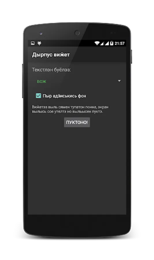 [Udm]: «Dyrpus viӝet" telefonlen ekranaz dyrez Udmurt kylyn vozmate.