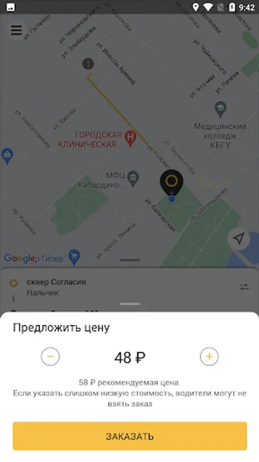 - Order a car without calling the dispatcher. Mark a point on the map, no need to write long address by hand;