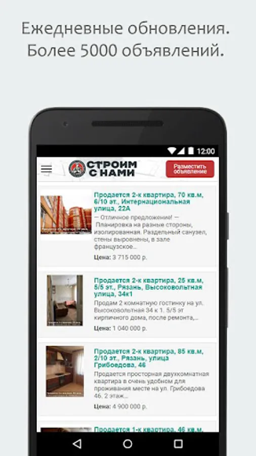 With the application "Real Estate Ryazan" you will find for sale resale housing, country and commercial real estate, land on the parameters of interest.