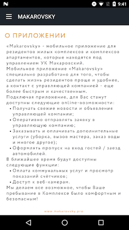Mobile application for residents of the residential complex "Makarovsky".