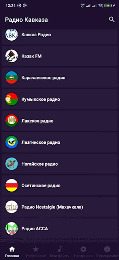 The list of available stations: Avar radio Adygeisk radio, Azerbaijan hit Azerbaijani radio, Armenian hit, Armenian Radio, Balkaria radio, Georgian radio, Dargin radio and soul of the Caucasus, Golden Asia hits Ingush radio Kabardian radio Karachaevsk Radio, FM Caucasus Caucasian love radio Caucasus, Caucasus Rap and RNB, FM Kazak, Kumyk radio Lak radio Lezginskie radio Nogai radio, Ossetian radio, Radio Alania, Radio City, Radio Meyhana, Radio Nasheed, Radio Waves, Radio Flight, Radio Vatan, Tabasaranskiy radio, Radio ACCA Chechen hit Chechen radio, Hip-Hop hit, radio Grozny, capital (Makhachkala).