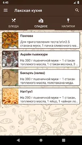 The annex contains a kitchen Lak Lak traditional dishes. Here you can find recipes, soups, salads, khinkali, sweets and drinks of our people.