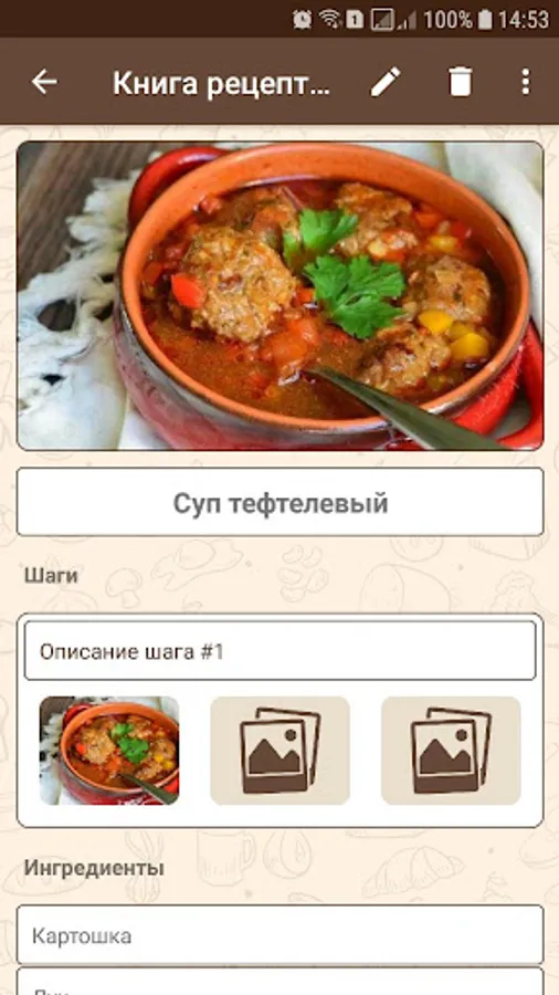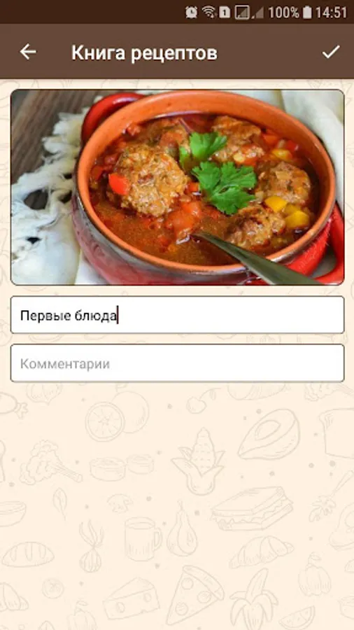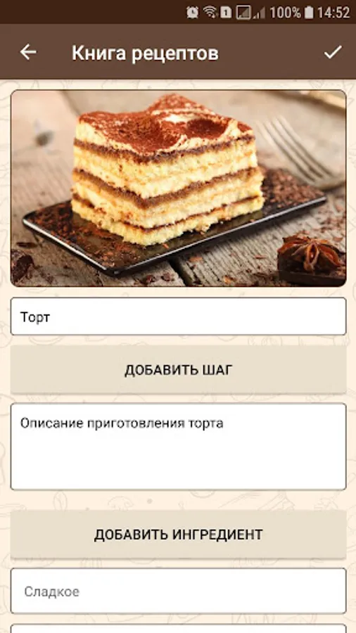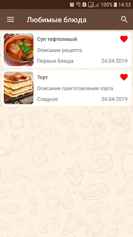 In the Cookbook application, you can record your favorite recipes of dishes, share them with friends, and upload to your phone. Recipes can be divided into categories, so you can always find any dish by selecting the desired category. Enjoy your meal!