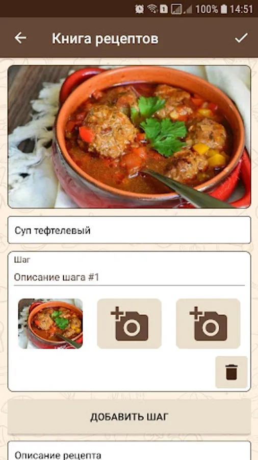 1. Quickly and easily add the recipe of the dish you like with a detailed description, describing each step and accompanying them with photos.
