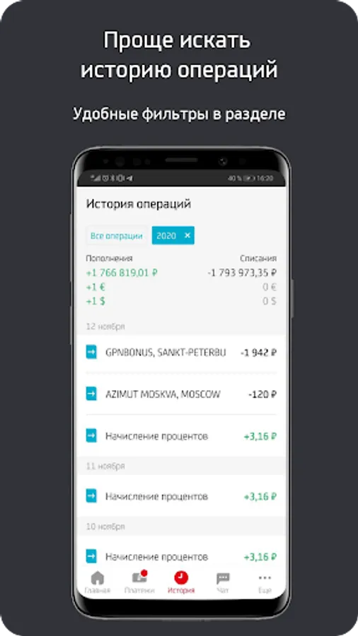 - information on your card and tariffs, obtaining details, setting restrictions and types of operations;