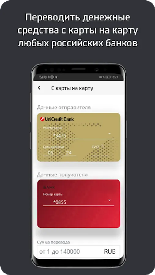 - money transfers by account or card number between bank clients, between cards of UniCredit Bank and other banks, or between cards of other banks;