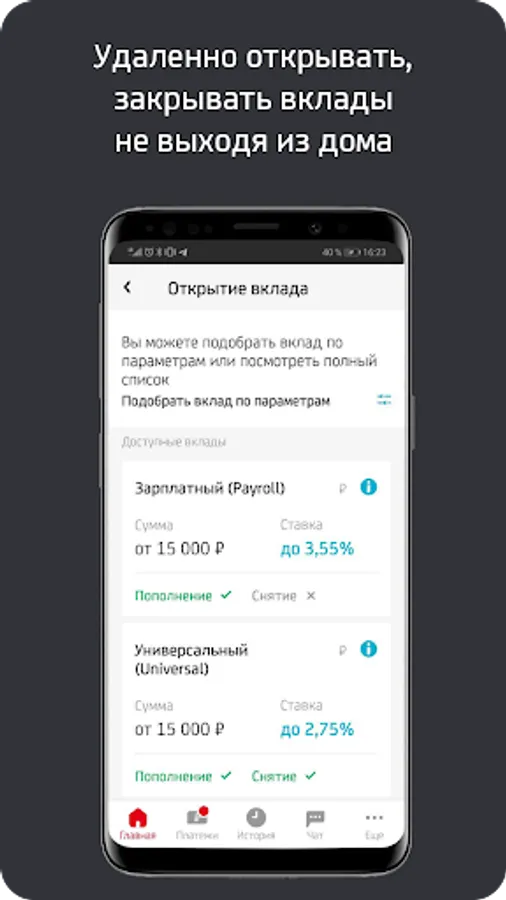 - opening, replenishment, partial or early withdrawal, changing the parameters of deposits;