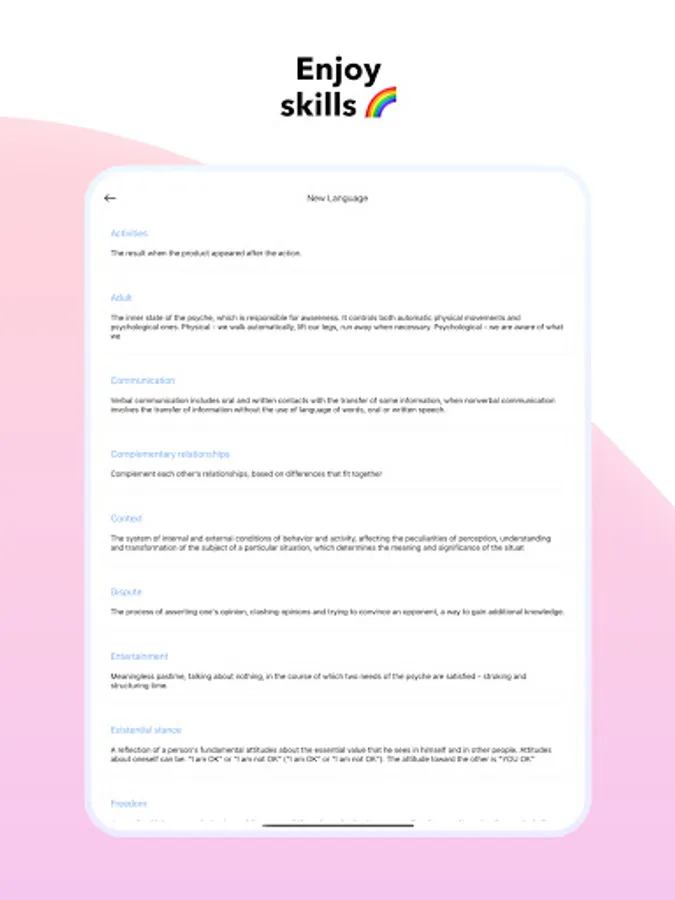 With the help of our Application you will be able gradually, step by step to open and develop in you awareness, learn to live each day in the "here and now" mode, receive and adapt new knowledge about yourself and the world. Together we will introduce useful rituals and habits, neutralize chronic fatigue syndrome, form life-affirming attitudes and statements, talk about personal growth and reflect on other relevant topics. The content of the resource will be replenished and updated over time, taking into account your wishes and feedback in order to be most useful and convenient in your journey to a new, conscious and happy life.