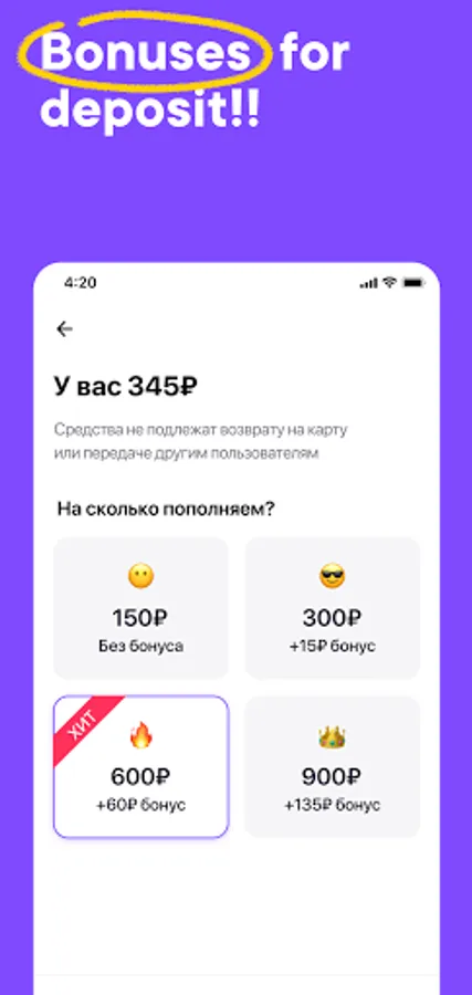 Get bonuses for deposits at your account: more deposit amount - more bonuses!