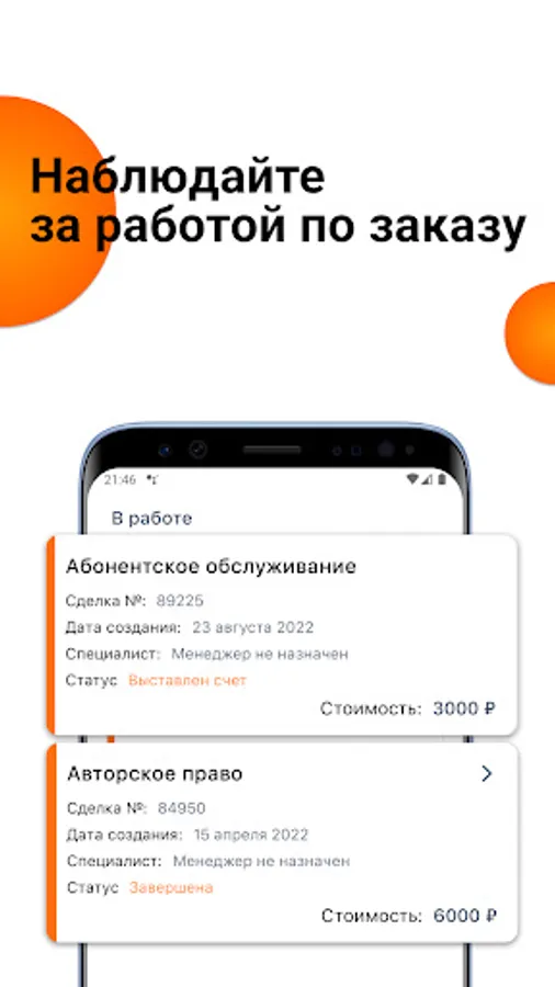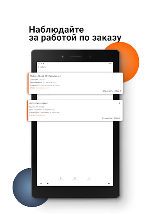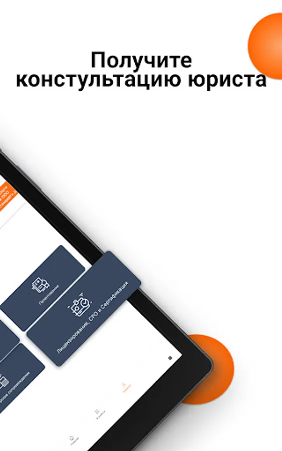 Our clients can safely engage in the development of their own business, without being distracted by the bureaucratic aspects of doing business and unnecessary communication with specialists. Legal and accounting issues are under full control and it is not necessary to call or come to the company to make sure of this: you can go to the application at any time and check everything! With our application, you can easily: - Open an LLC or individual entrepreneur - Register a trademark - Order the submission of financial statements - Get online advice on any issue within just 5 MINUTES! Our application guarantees you: