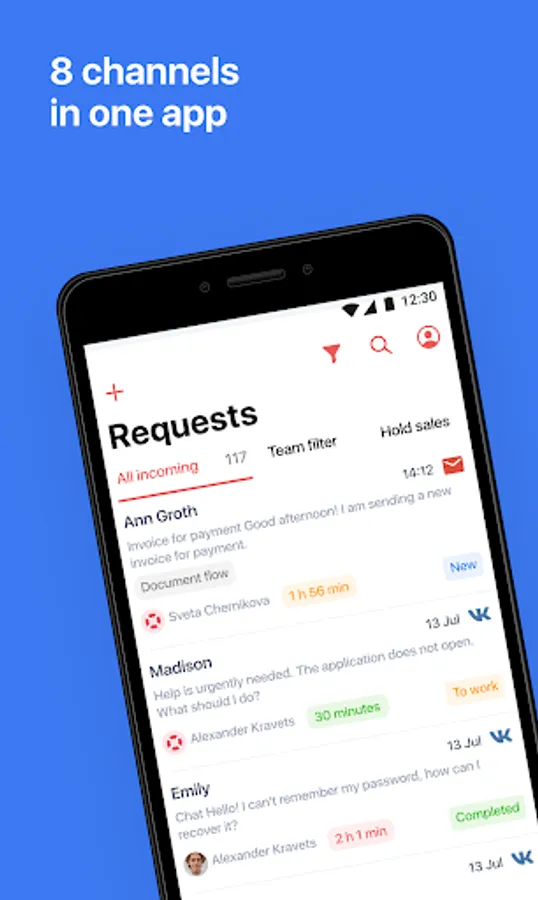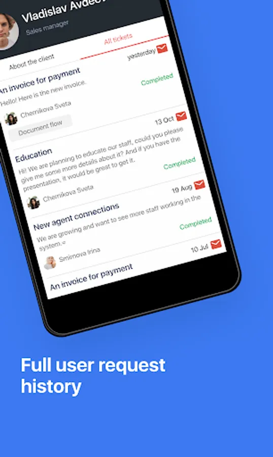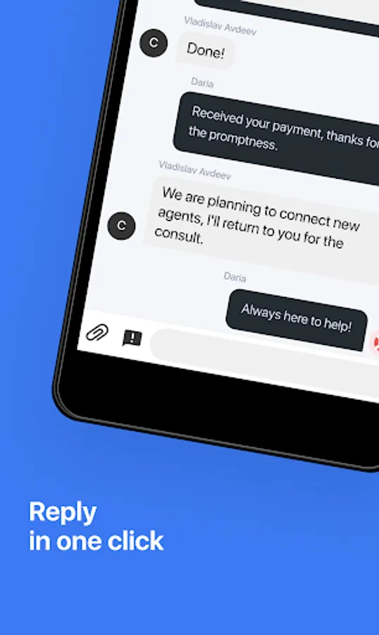 UseDesk for mobile phones was developed specifically for customer support managers and agents who are not attached to a single place.