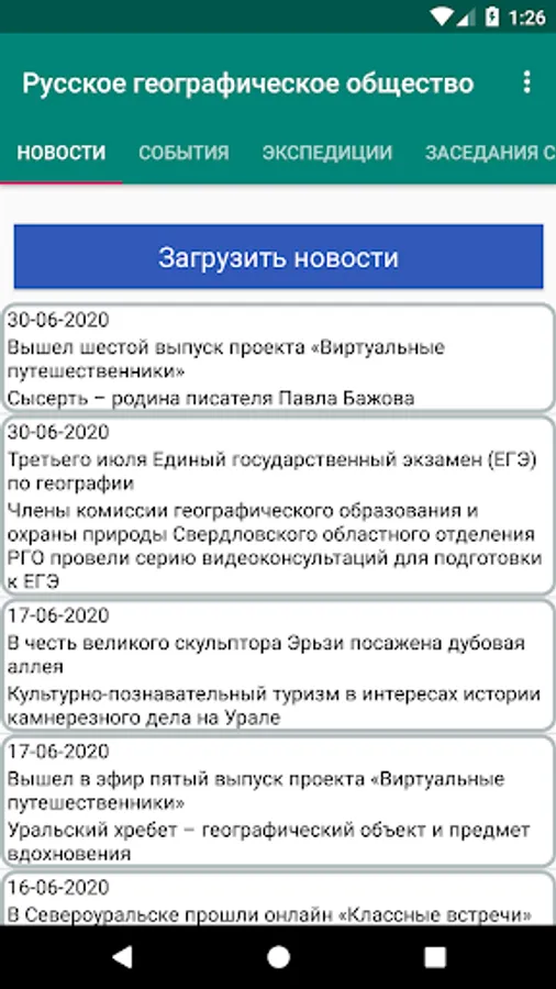 The Sverdlovsk Regional Branch of the Russian Geographical Society was established in March 1946.