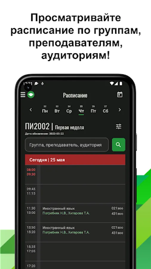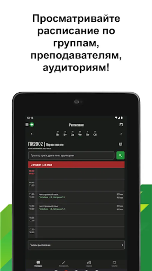 Universal assistant for students and elders. View your schedule, create homework assignments for yourself and your classmates, run errands for the prefect, or manage your group yourself. The key feature is integration with your university.