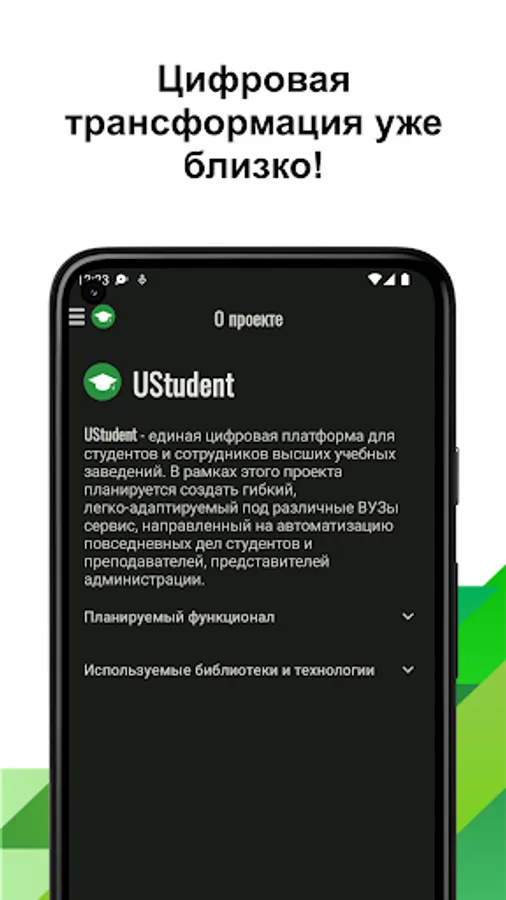 UStudent is a project of a unified digital platform for students and staff of higher educational institutions. As part of this project, it is planned to create a flexible, easily adaptable service for various universities, aimed at automating the daily affairs of students and teachers, administration representatives.
