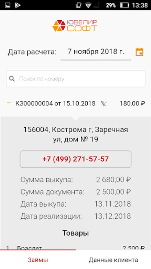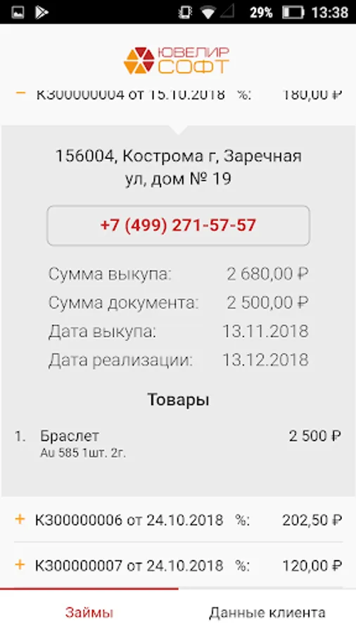 The borrower's mobile application allows the pawnshop to be closer to the borrower, to increase its loyalty. The application is integrated with JewelerSoft “Jewelry Pawnshop Accounting” product.