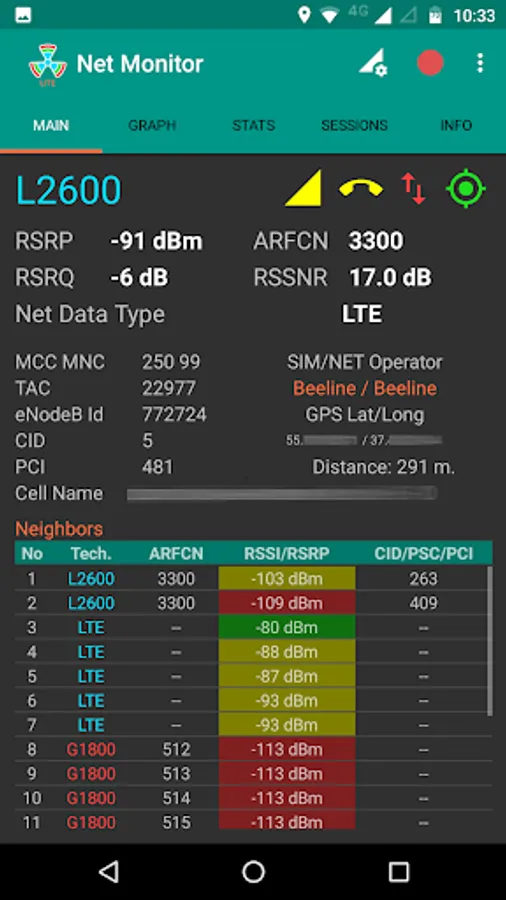 For Android 4.3 or higher. Dual SIM limited support for Android 5.1 or higher. If there is no BTS file, ARFCN and Band are available for Android 7 or higher. To see Cell Tower on map BTS file must be loaded.