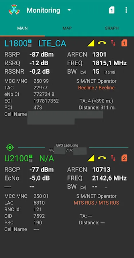 - Display network technology and signal strength on the map