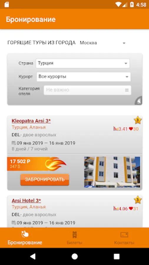 - Choose the most profitable tour of the parameters and order it