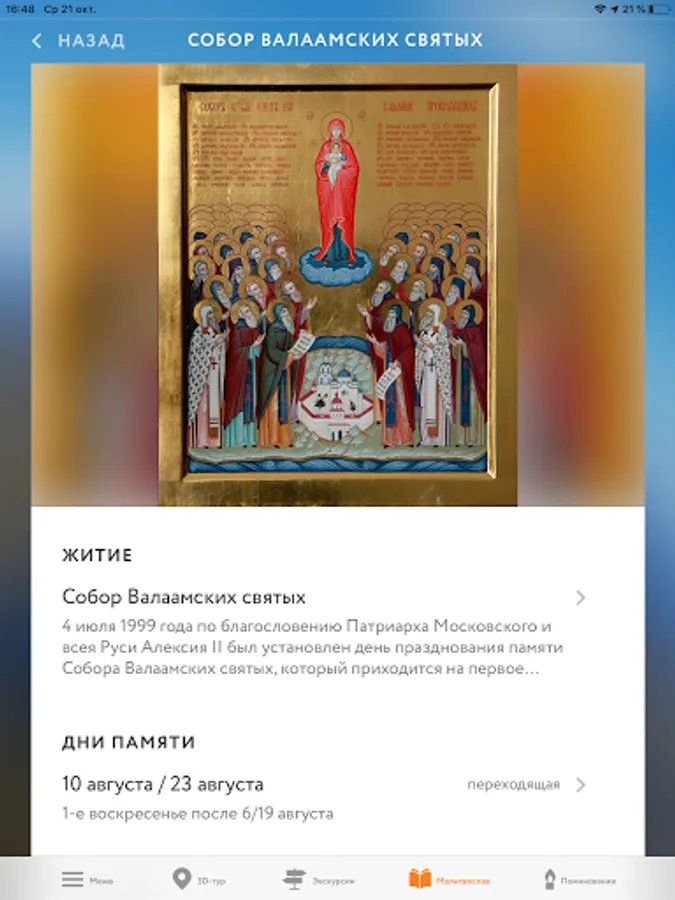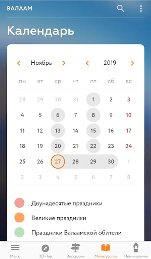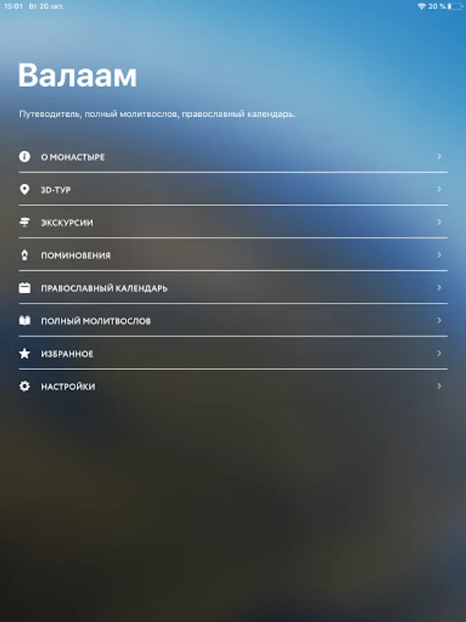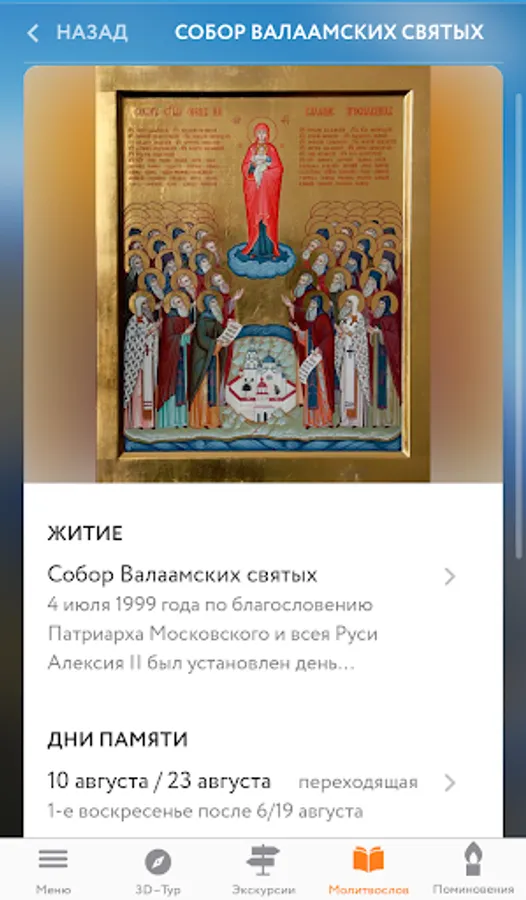 The creative association "Parsuna" and the Valaam Monastery present a multifunctional mobile application "Valaam. Guide, Prayer Book ”, which includes a 3D tour and a guide with panoramas, a map and navigation around the island, virtual tours, a complete Orthodox prayer book and an Orthodox calendar.