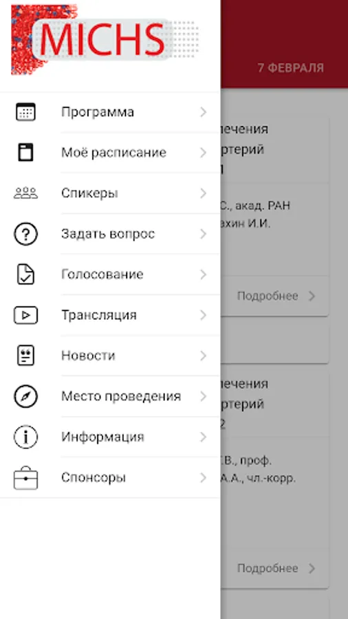 The application contains: - Event program - List of speakers with individual schedules - Ability to add events to favorites - News, information about the Conference - Ability to ask questions and participate in voting - Ability to rate your favorite reports