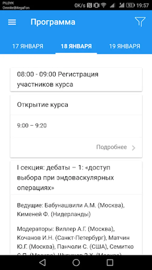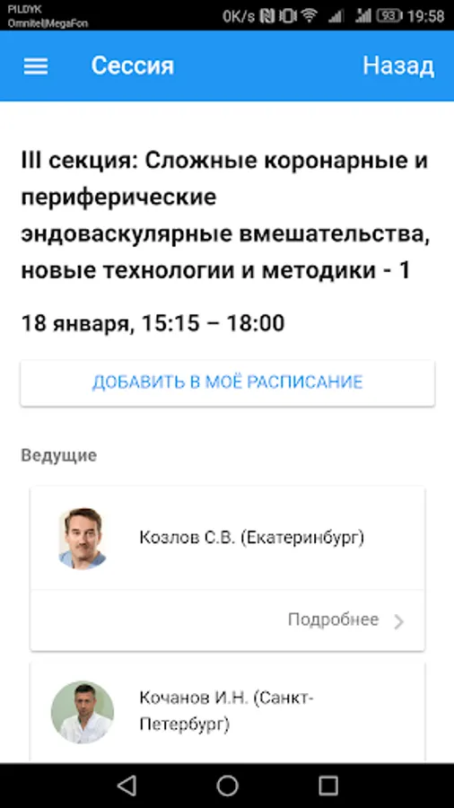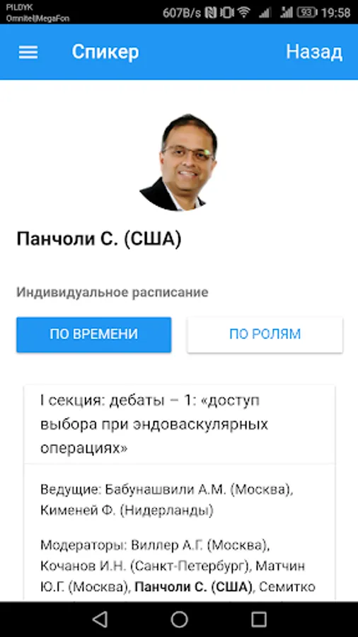 • List of speakers with individual schedules