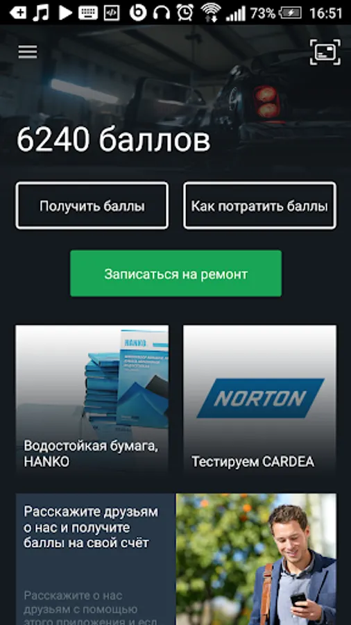 Additionally, the entire list of real tangible services We are happy to present you one of the best discount programs - a three-level accumulation of bonus rubles, simple accounting, charging speed and ease of use will enable you to use the services of the Service with significant savings or even free. Earn more bonus rubles due to the spread of applications, due to the expenses of your friends and to maintain, repair, improve your car absolutely free!