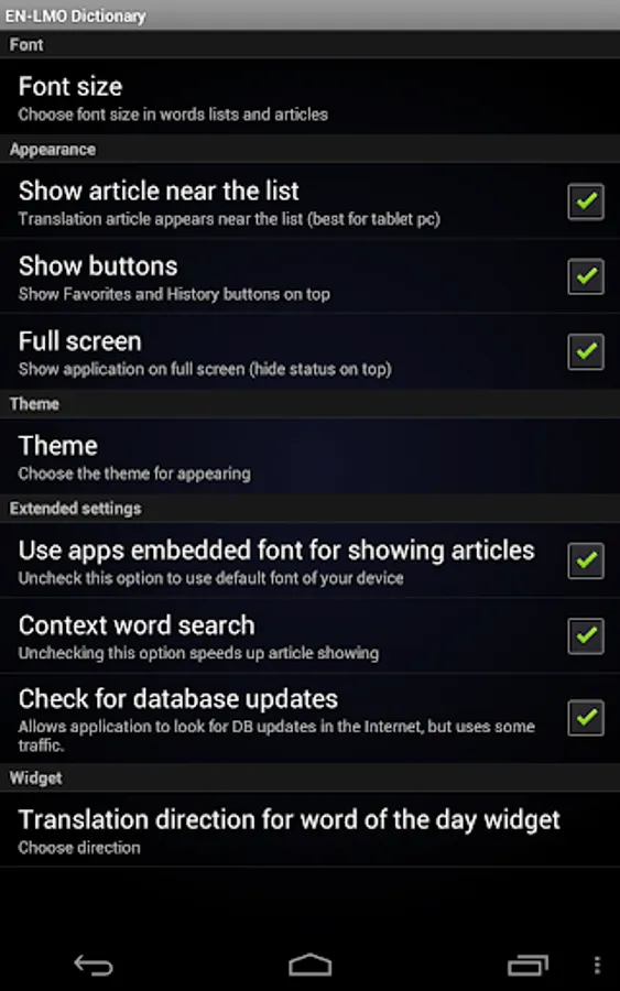 7. Random word of the day widget. To see the widget in the list the application must be installed to phone memory (dictionary database may be installed anywhere).