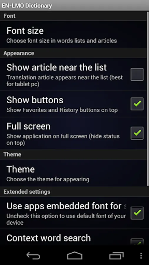 4. Various Settings – you may change application’s font and theme (choose one of several color themes).
