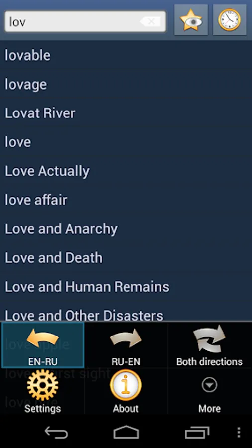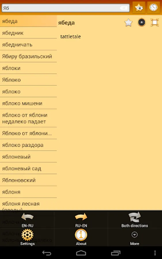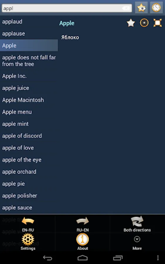 This is English - Russian and Russian - English dictionary; Англо - Русский и Русско - Английский словарь. The Application works OFFLINE and does not need the internet connection.
