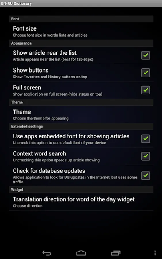 5. Random article of the day widget. To see the widget in the list the application must be installed to the phone memory (database might be installed anywhere).