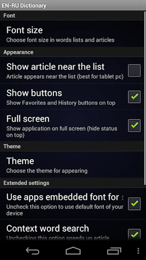 4. Various Settings – you may change application’s font and theme (choose one of several color themes).