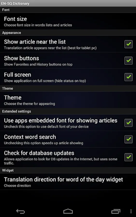 5. Random article of the day widget. To see the widget in the list the application must be installed to the phone memory (database might be installed anywhere).