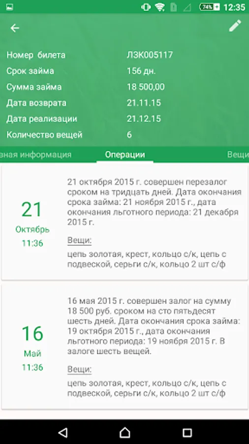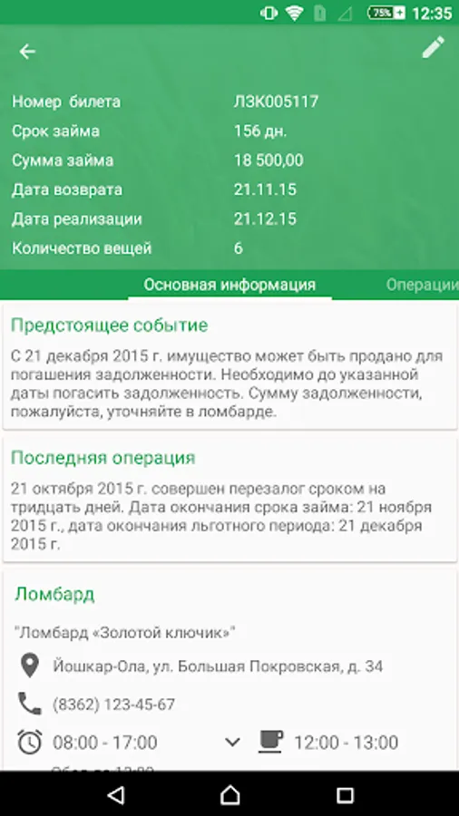 The application will not let you lose all of the important things about your pledges: The loan repayment period or the loan is overdue. Here you can see the full information about your existing loans, past and upcoming events on the pledge.