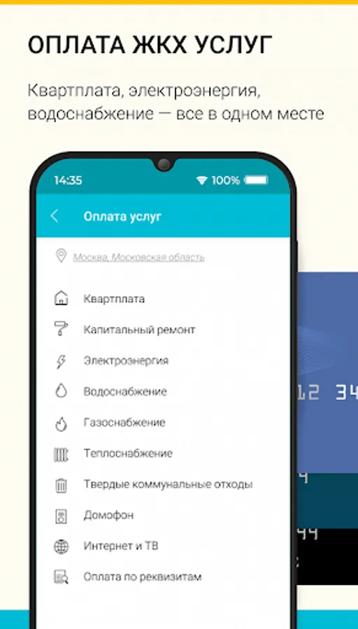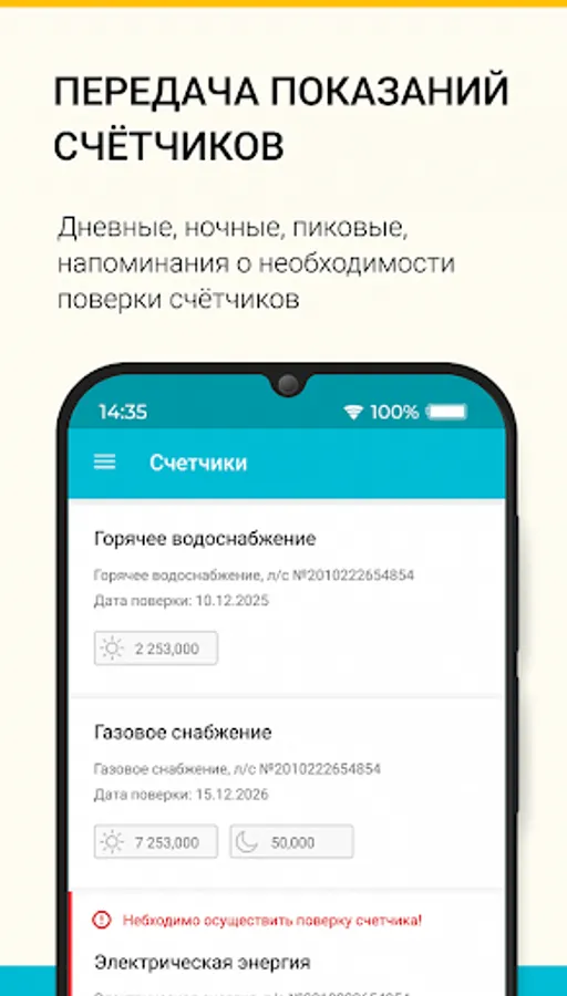 • Transferring meter readings and viewing previous readings from the personal account of housing and communal services.
