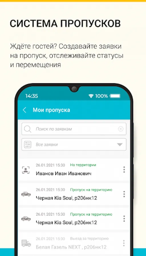 • Creation of an application for the pass of a car or a pedestrian guest to the territory.