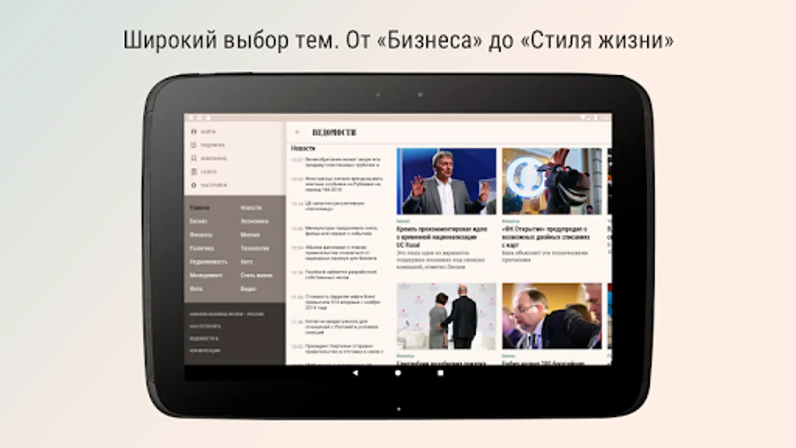 The application Vedomosti for Android allows you to read authentic news 24/7, anywhere in the world.