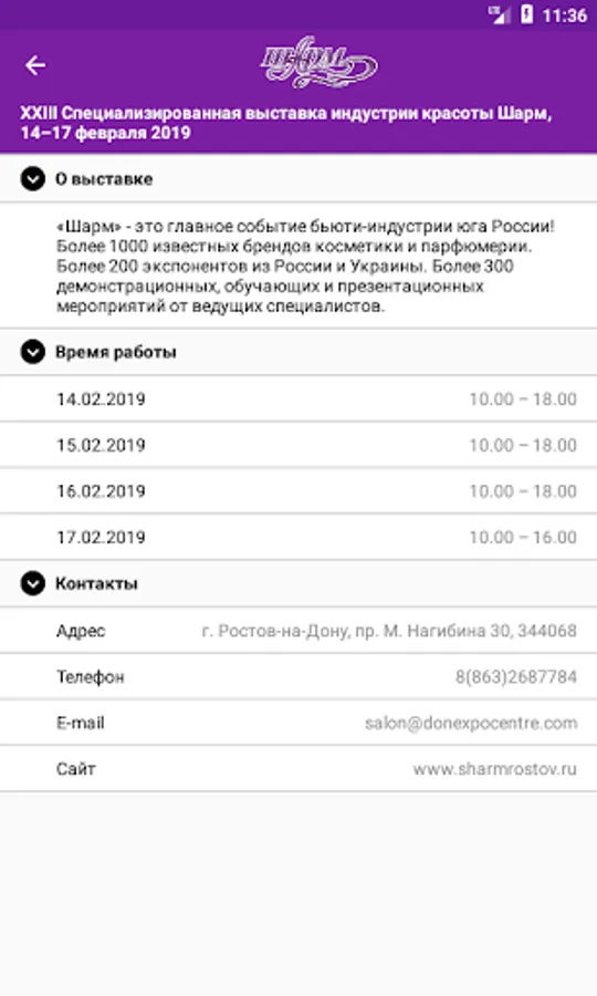 This application allows the user to get acquainted with the program of exhibition activities, learn information about the participants and sponsors of the event. All information provided is published with the permission of the participants and organizers.