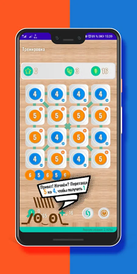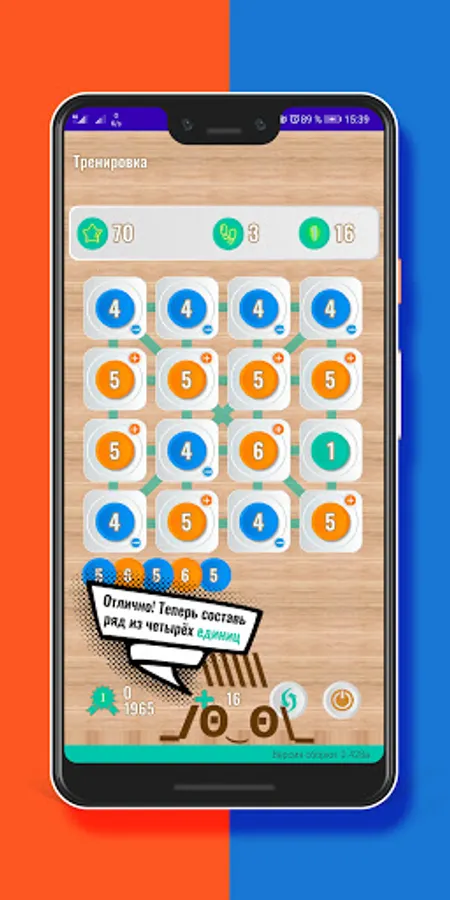 An arithmetic puzzle in which you have to achieve a certain combination on the playing field by means of simple calculations