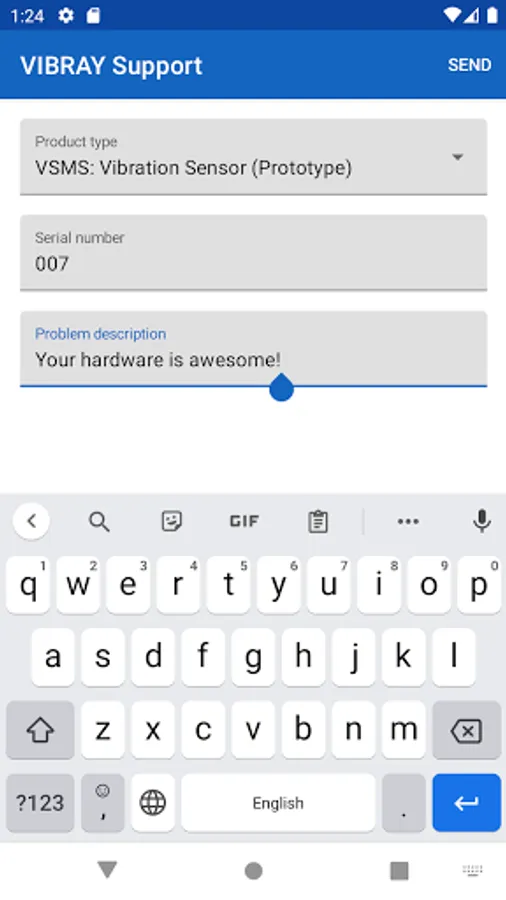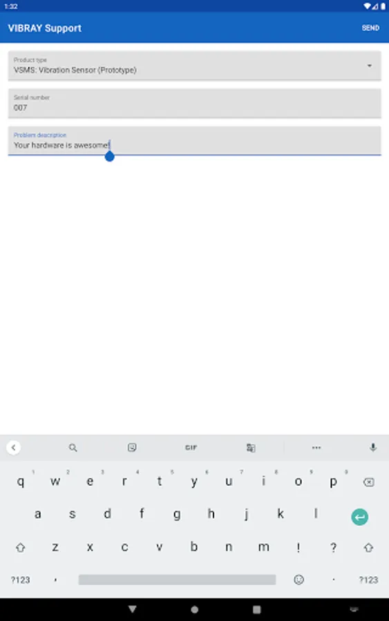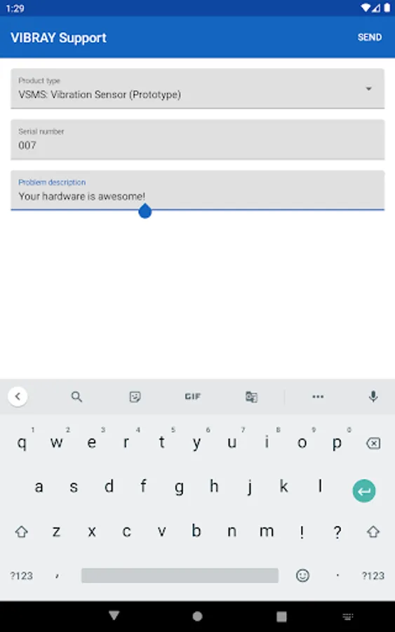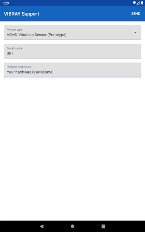 Application to support users of Vibray products such as vibrating screen monitoring system (VSMS) or HMI-panel. With this application, you can send feedback on the operation of the equipment.