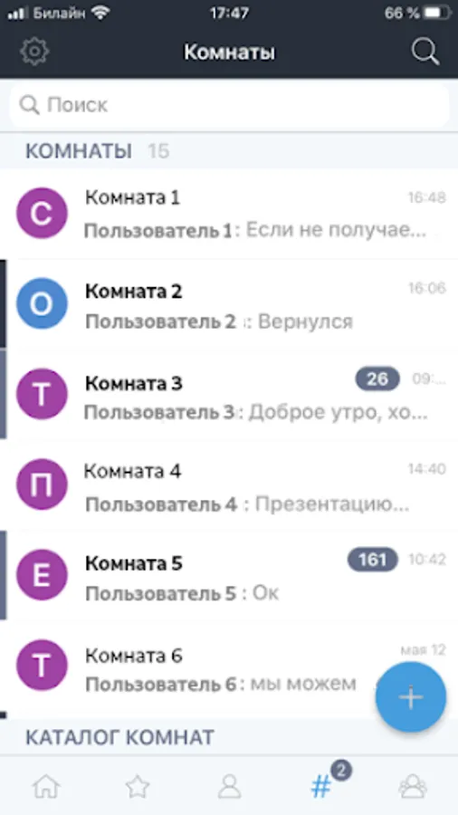 • Instant exchange of messages, images, videos and files of any type in individual chats and groups