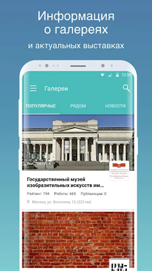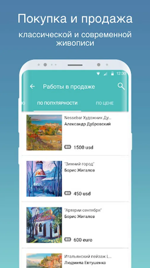 - Follow your favorite authors with one touch. You no longer have to view a lot of resources to find artworks of your favorite artists: susbscribe once and don`t miss any art news or sales.