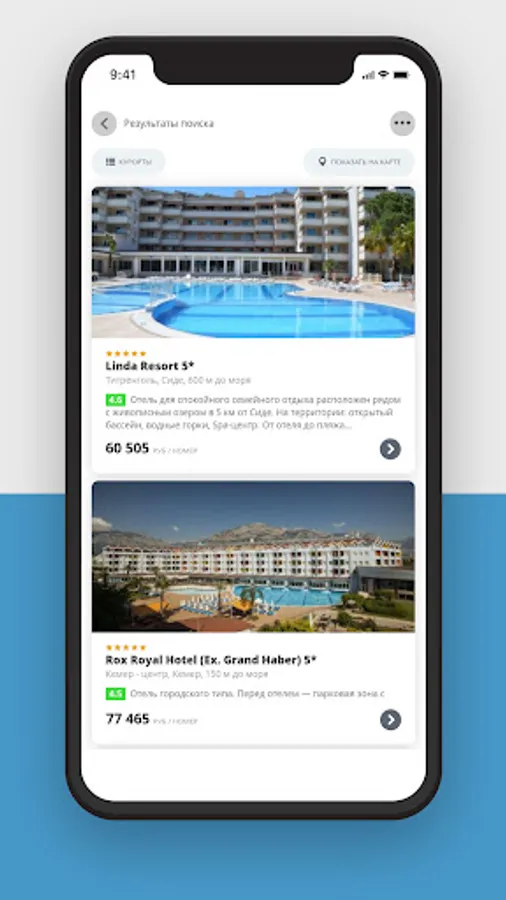 Vacation in Russia or abroad with a choice of all possible options and a purchase in your smartphone - VkTravel.ru. All inclusive or breakfast only, what services should be provided and whether there are slides for children - you can filter before you start your search! The location of the hotel on the map, rating and reviews from the largest information platforms will help you make the right choice.