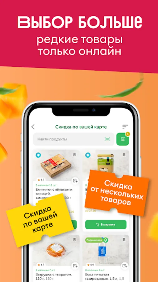 The VkusVill app is not a typical delivery service, but an online eco-market with individual discounts and great deals. The VkusVill card is issued automatically when you enter your phone number. The loyalty program is tailored to you: