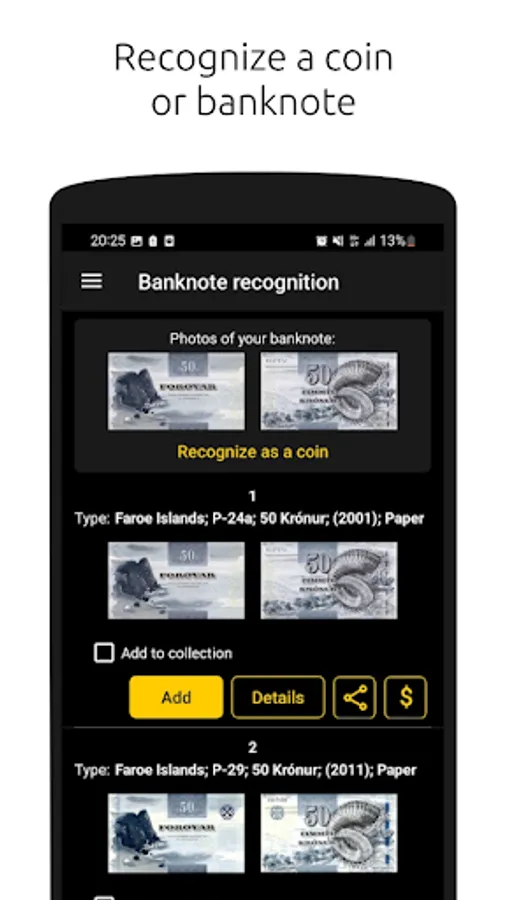 — Identify the coin and banknote by the photo from the phone. Maktun already knows about 300 000 types of coins and 120 000 types of banknotes.