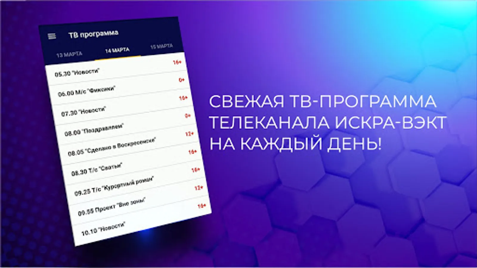 In the application, you can watch TV shows and daily current news. Leave your comments and share information with friends. Find out what awaits you today and in the coming days on the program of the Iskra-VEKT channel.