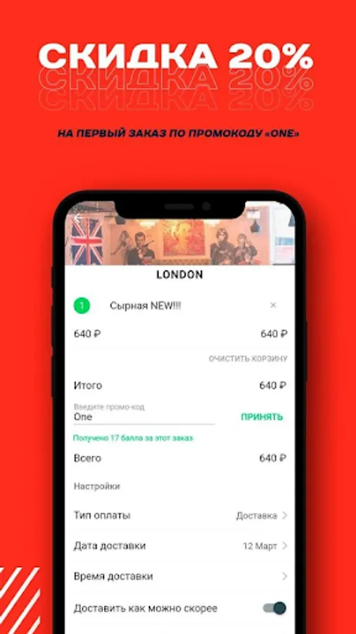 Discount - 20% on the first order with the ONE code