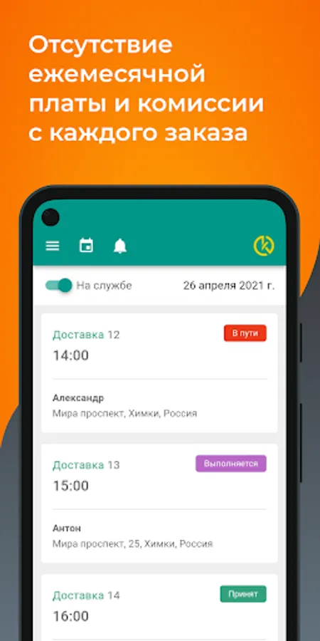 Приложение курьерского сервиса для агрегатора, для работы службы доставки в связке Агрегатор доставки еды + курьеры.