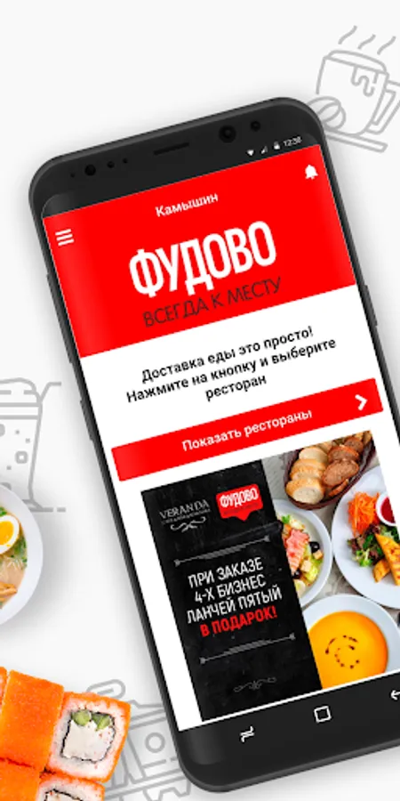 Fudovo - a delivery service for pizza, sushi, burgers and other food from restaurants, cafes and convenience stores in small towns!