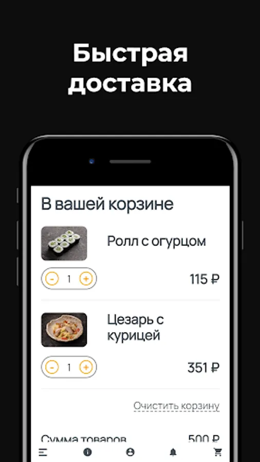 In the application, you can order your favorite dishes (rolls, noodles, pizzas, burgers, grills, salads, drinks, desserts and other food).